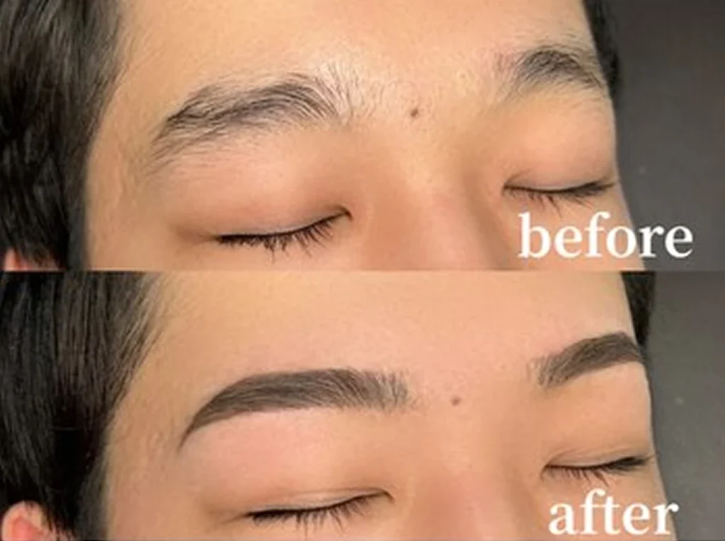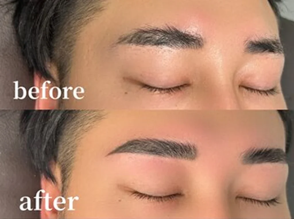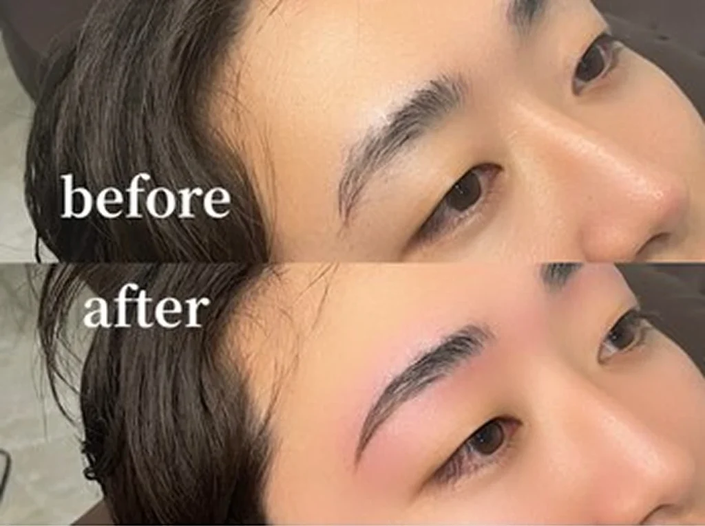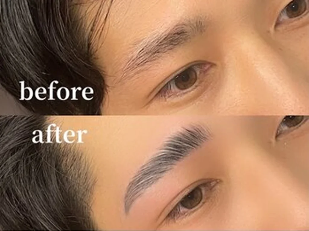 パーマで毛流れを補正し、WAXで不要な部分を丁寧に取り除きます。仕上げに眉メイクで全体のバランスを整えます。