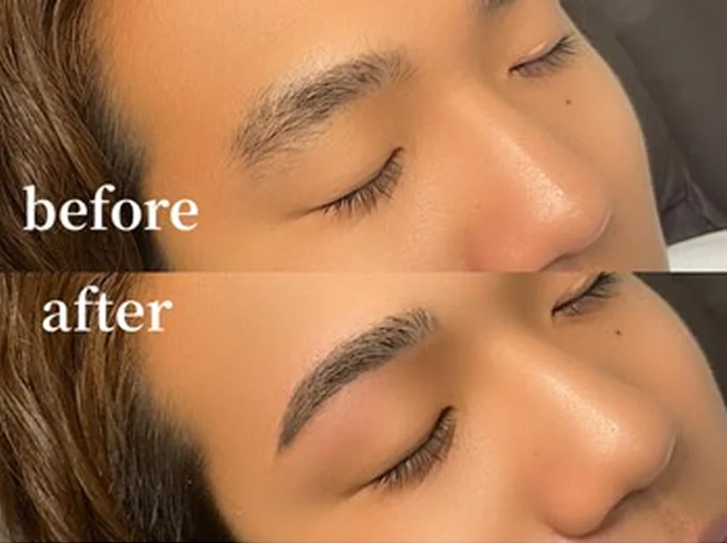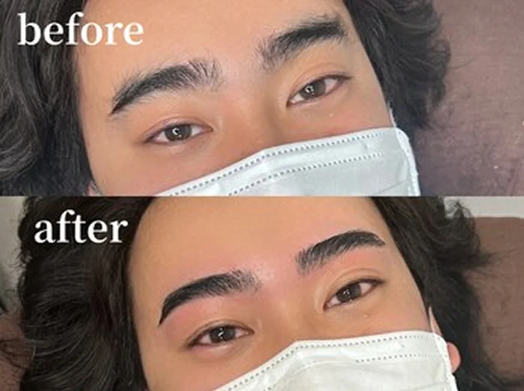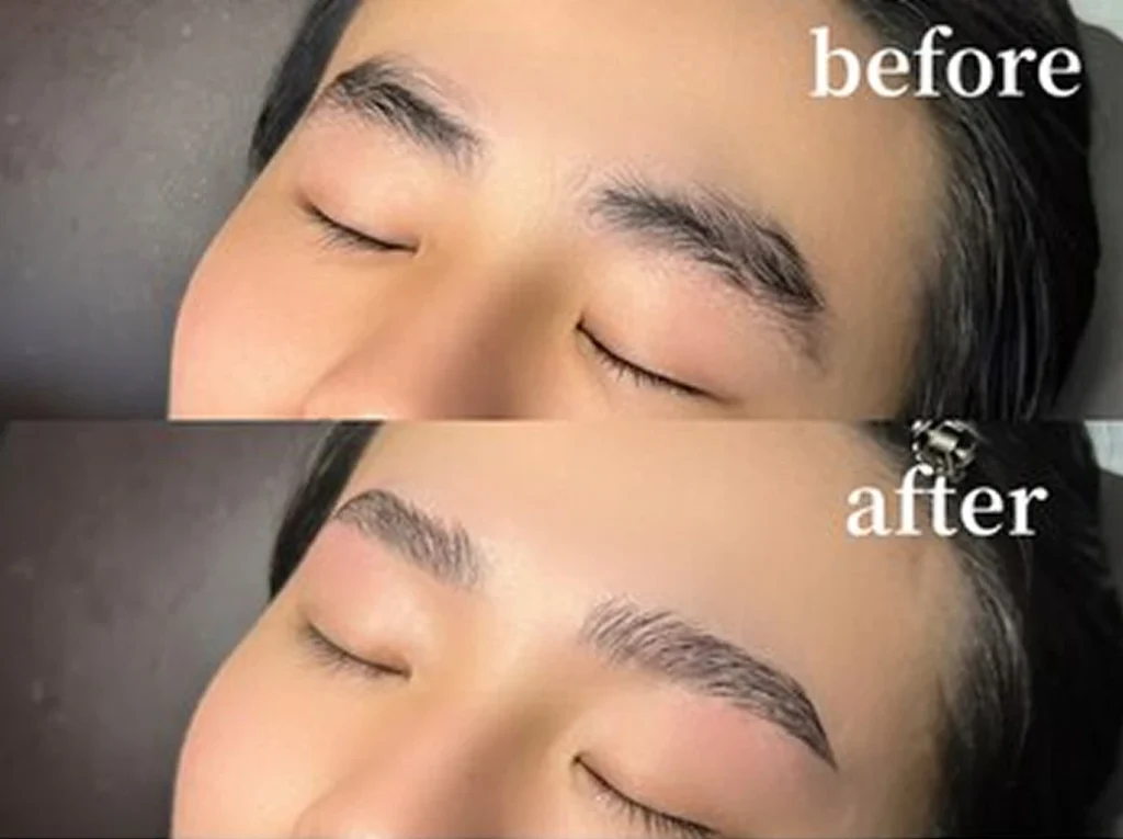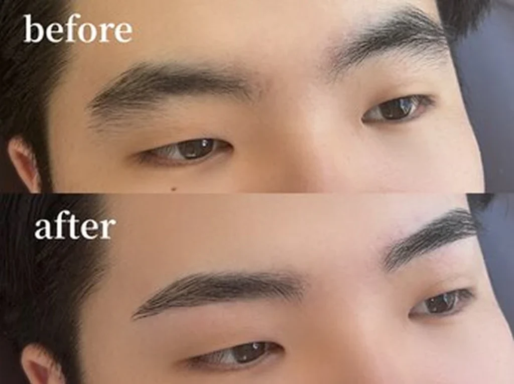 パーマで毛流れを補正し、WAXで不要な部分を丁寧に取り除きます。仕上げに眉メイクで全体のバランスを整えます。